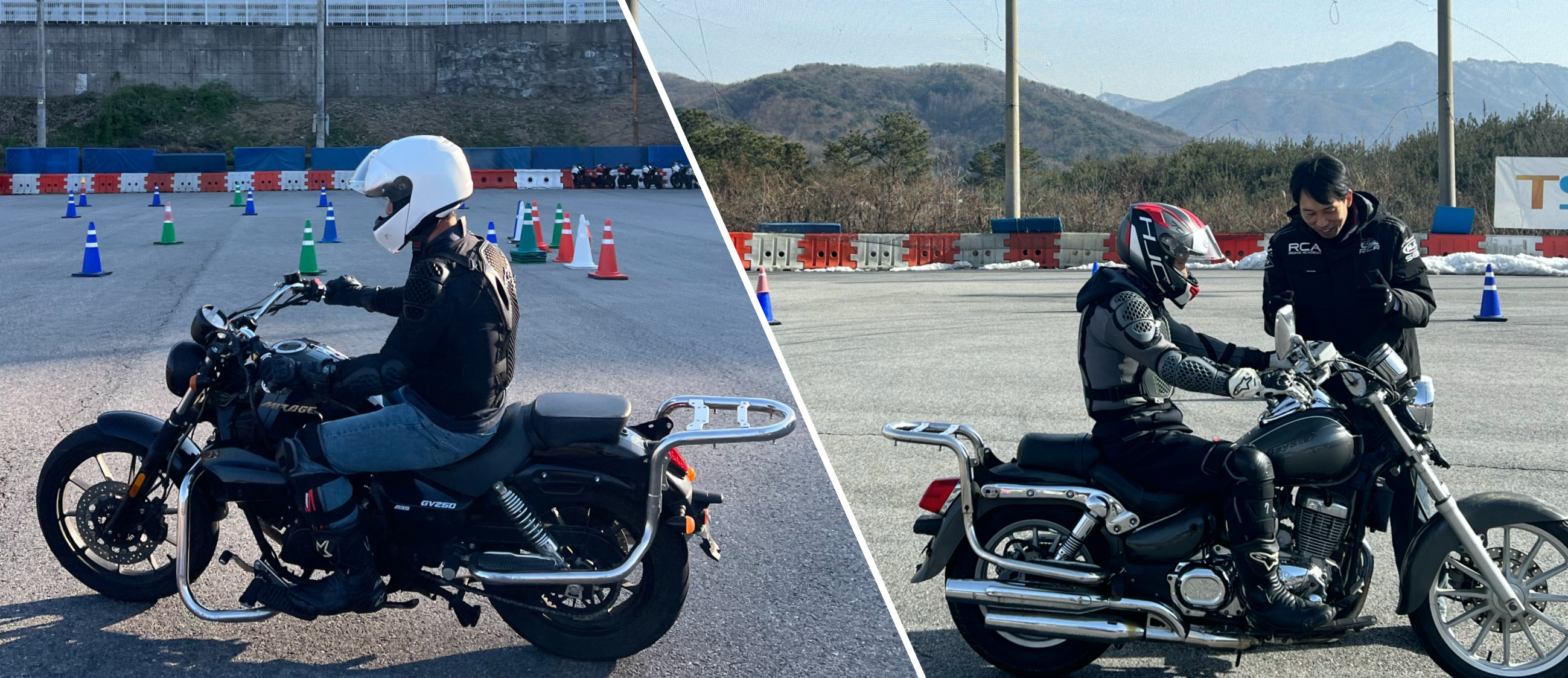 - 교육 : 서킷 및 본격 스포츠 주행을 위한 필수 행오프(무릎 긁기)의 기초 개념 이해/실습, 실제 행오프를 경험하고 안정화하는 과정.